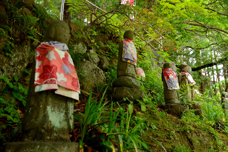 2013年のまだ松の内に初詣を兼ねて秩父駅周辺の札所を回った。この地蔵たちには第15番母巣山少林寺に向かう途中で出会った。午後の日航を背中から受けて、真っ赤なよだれ掛けが鮮やかだ。2013年1月5日撮影 Nikon D600 AF-S NIKKOR 24-85mm f/3.5-4.5 G ED VR f.5.6 1/500 ISO 200