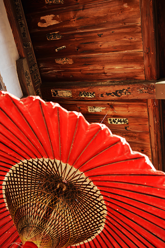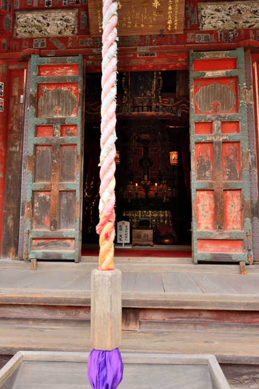 ベンガラ塗りの扉の奥のご本尊を正面に撮ろうとしたのだが、微妙に画面が傾いてしまった。第1番誦経山四萬部寺。2013年6月8日撮影 NIKON D600 AF-S NIKKOR 16-35mm f/4G ED VR f.8 1/125 ISO360