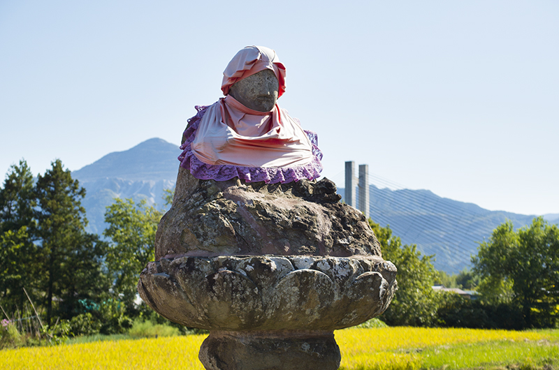 第23番松風山音楽寺へは長い道のりを歩かなければならない。その境内も広い。背後の小鹿坂峠の上に並んで建っている地蔵の一つ。2013年10月13日撮影 NIKON D600 SIGMA 35mm F1.4 DG HSM f.1.4 1/4000 ISO100